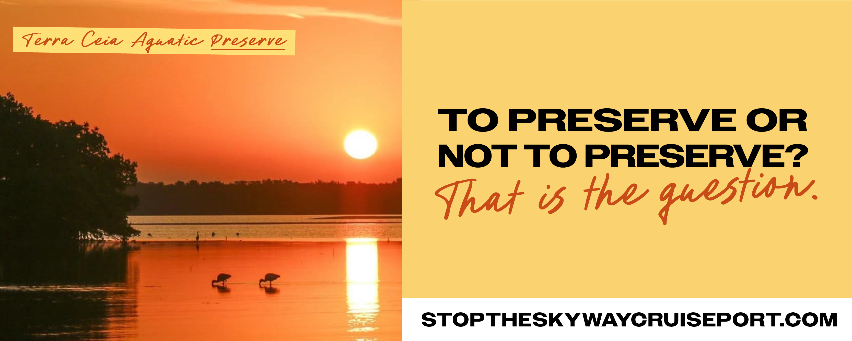 Suncoast Waterkeeper, Tampa Bay Waterkeeper and our coalition partners, formally oppose the proposed multi-berth cruise terminal on the Knott-Cowen Tract, a privately held property within the geographic boundaries of the Terra Ceia Aquatic Preserve (TCAP). Our opposition is grounded in the preserve’s existing legal protections and legislative intent, its documented ecological significance and cultural heritage, and its established and ongoing economic importance to Tampa Bay and surrounding communities.