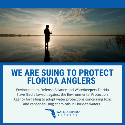 Suncoast Waterkeeper, through Waterkeepers Florida (WKFL) and alongside the Environmental Defense Alliance (EDA), has filed a lawsuit against the U.S. Environmental Protection Agency (EPA) to demand long-overdue protections for Florida’s waters. So far, officials have failed to protect anglers, seafood lovers, and everyday residents from toxic pollution in our waters.