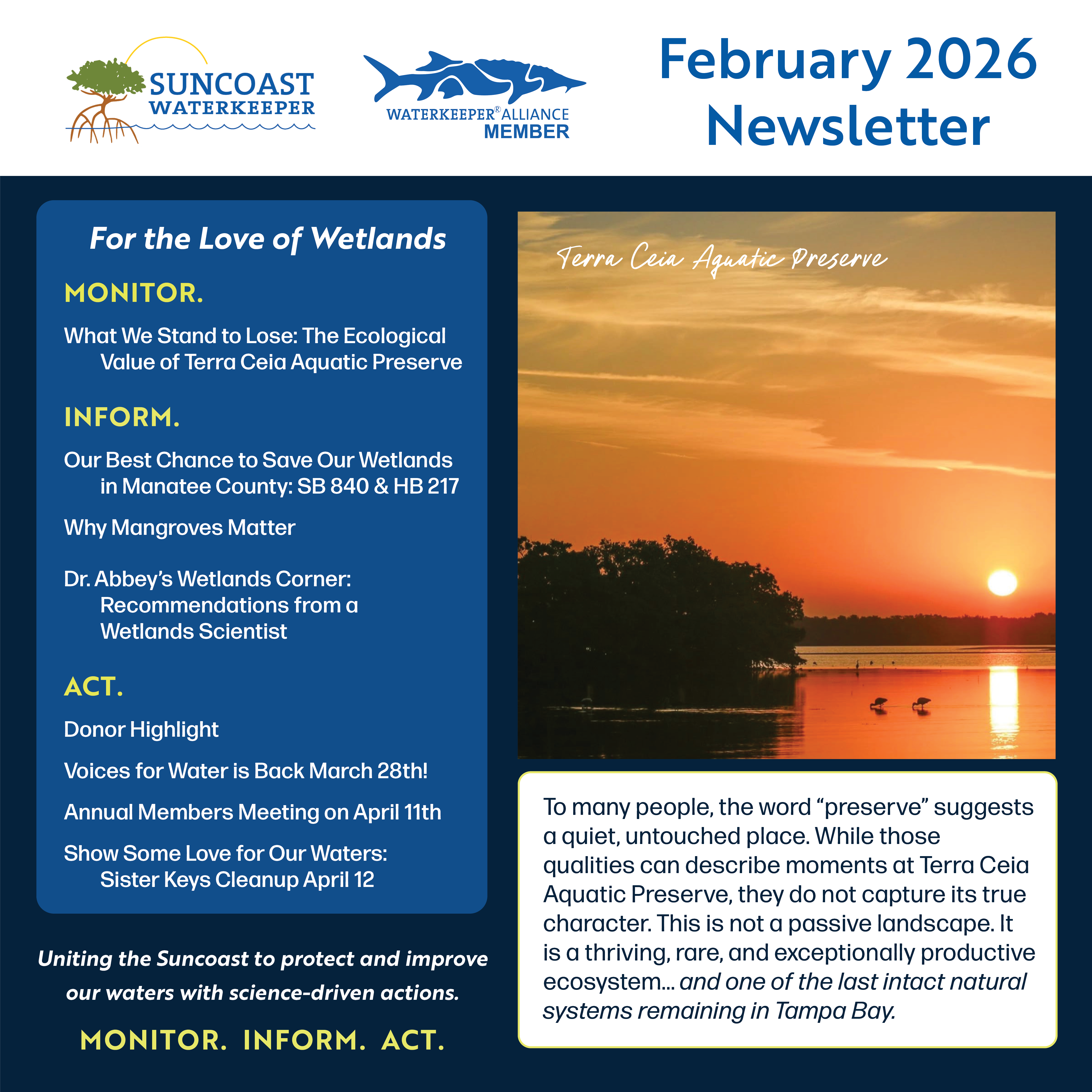 “We support Suncoast Waterkeeper because clean water isn't a luxury—it's a necessity. They don't just talk about clean water—they fight for it. Their fearless work holding polluters accountable gives us hope that future generations will inherit the pristine waterways they deserve. That's why we give. Our waters need defenders, not bystanders."